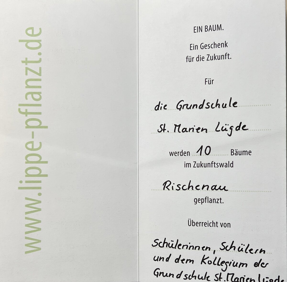 Das Chilli hat unsere Schule für die Baumpflanz-Challenge nominiert – eine Aktion, die auf spielerische Weise den Blick auf Nachhaltigkeit und Naturschutz lenkt. Statt selbst zu pflanzen, haben wir uns gemeinsam für eine Spende von 40€ für den Zukunftswald Rischenau entschieden und möchten so einen Beitrag zu langfristigem Umwelt- und Klimaschutz leisten. Die Spende übernimmt der Förderverein.